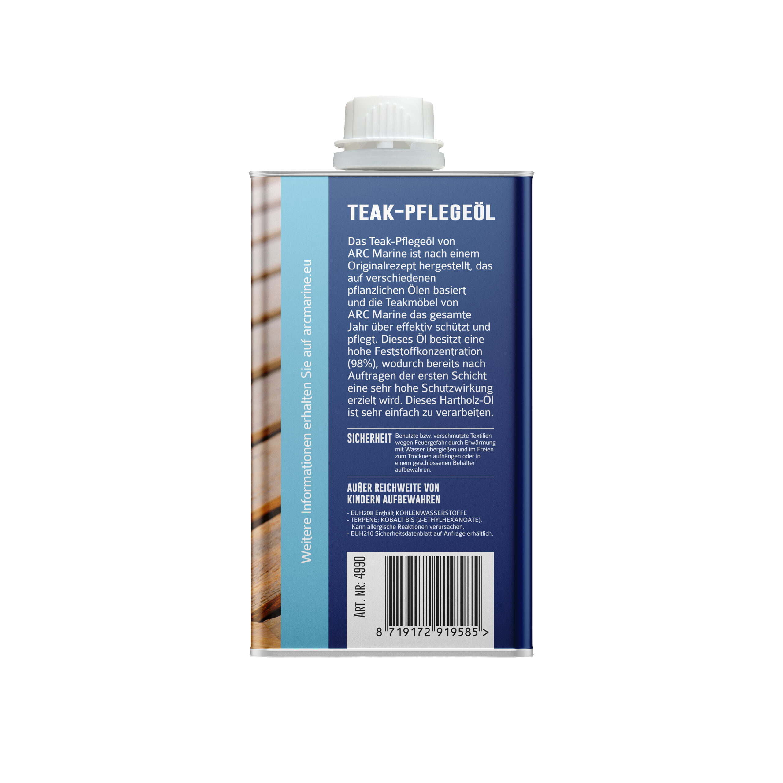 Das Teak Pflegeöl für Möbel und Accessoires Holzschutz ist die richtige Wahl um die Schönheit sowie Substanz Ihrer hochwertigen Einbauteile dauerhaft zu erhalten. Dieses Öl basiert auf natürlichen Inhaltsstoffen und dringt tief in die Holzfasern ein, ohne einen dicken Film zu bilden der später abblättern könnte. Es sättigt das Holz von innen heraus und verhindert so das Eindringen von Feuchtigkeit und Schmutz, was gerade in der feuchten Bordluft essenziell ist. Gleichzeitig frischt es die natürliche Farbe des Teakholzes auf und verleiht ihm einen edlen Seidenglanz.